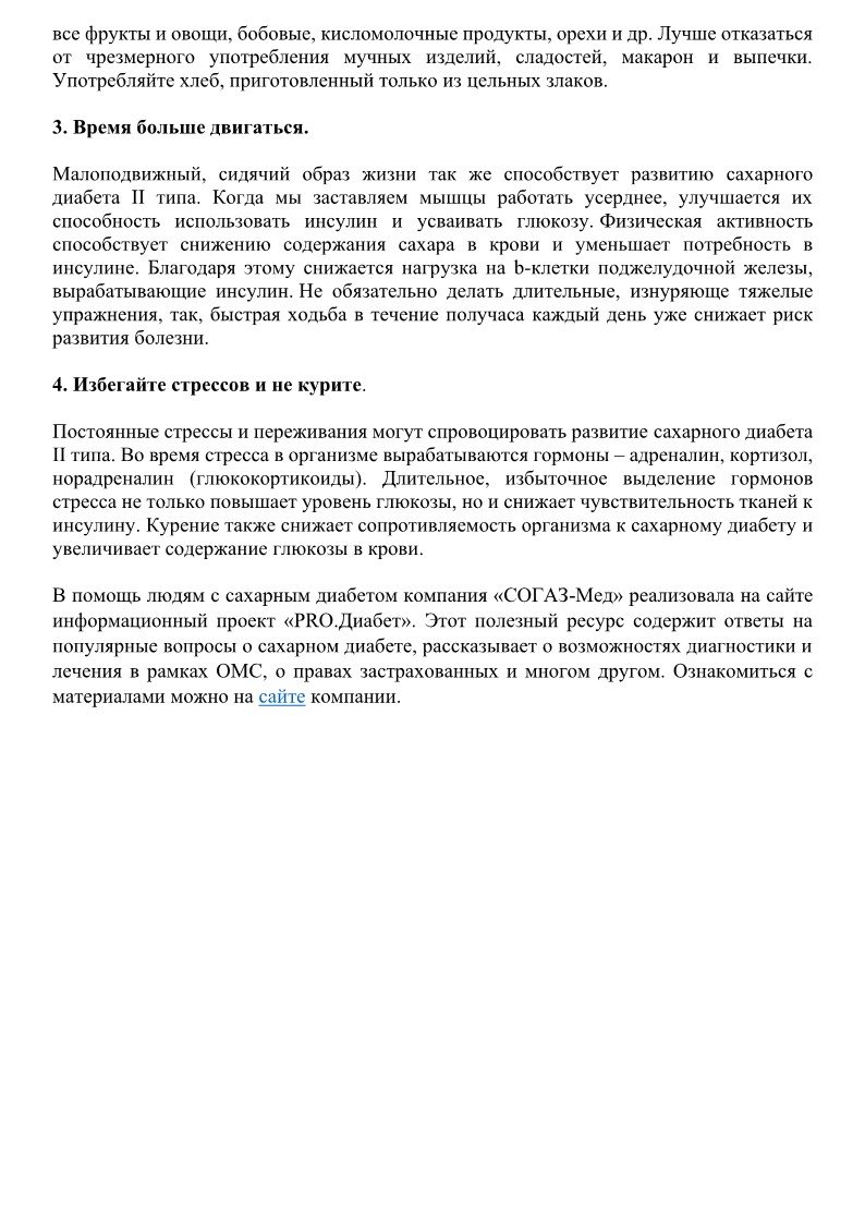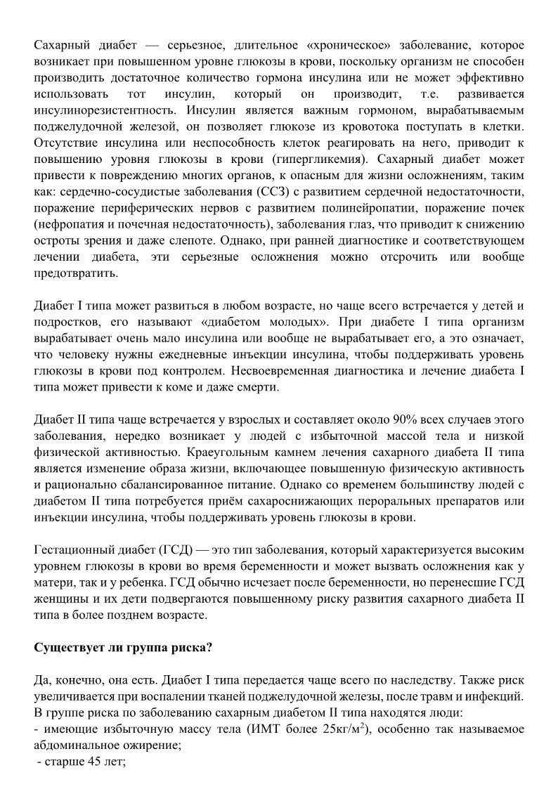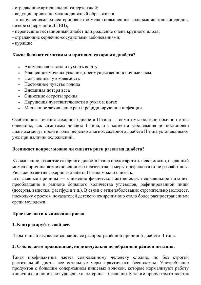 О факторах риска развития и мерах профилактики сахарного диабета