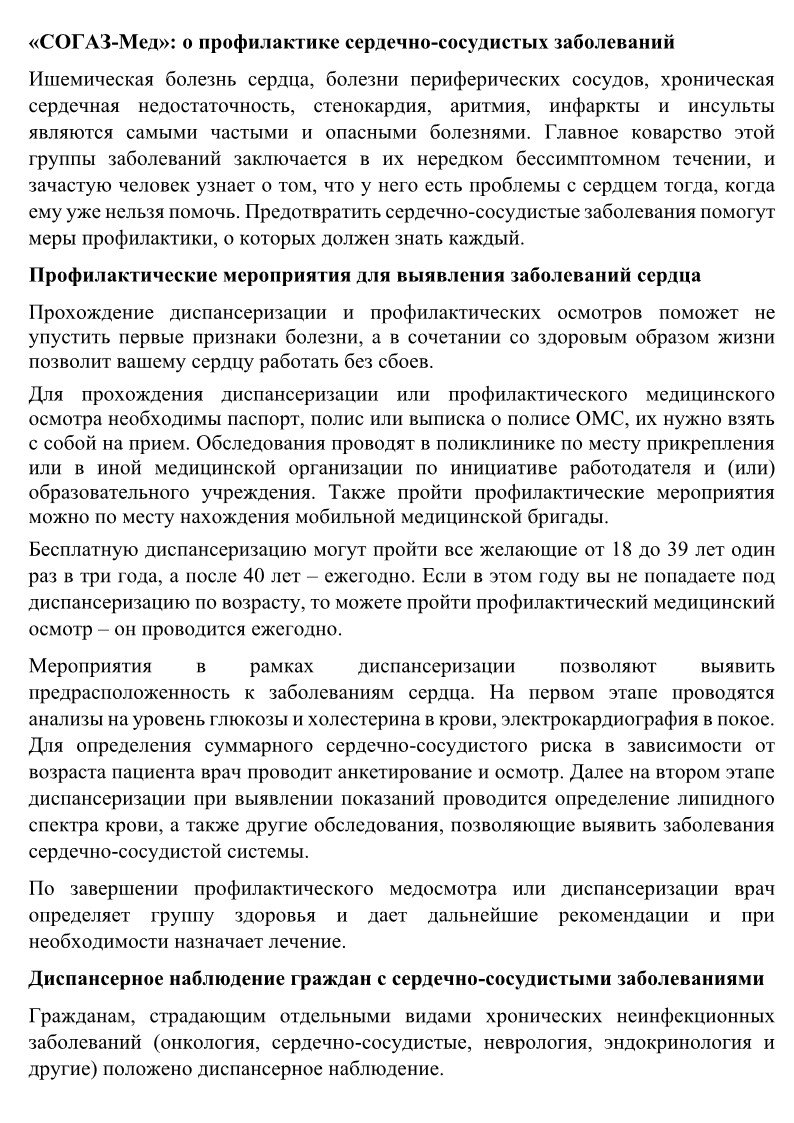 «СОГАЗ-Мед»:о профилактике сердечно-сосудистых заболеваний