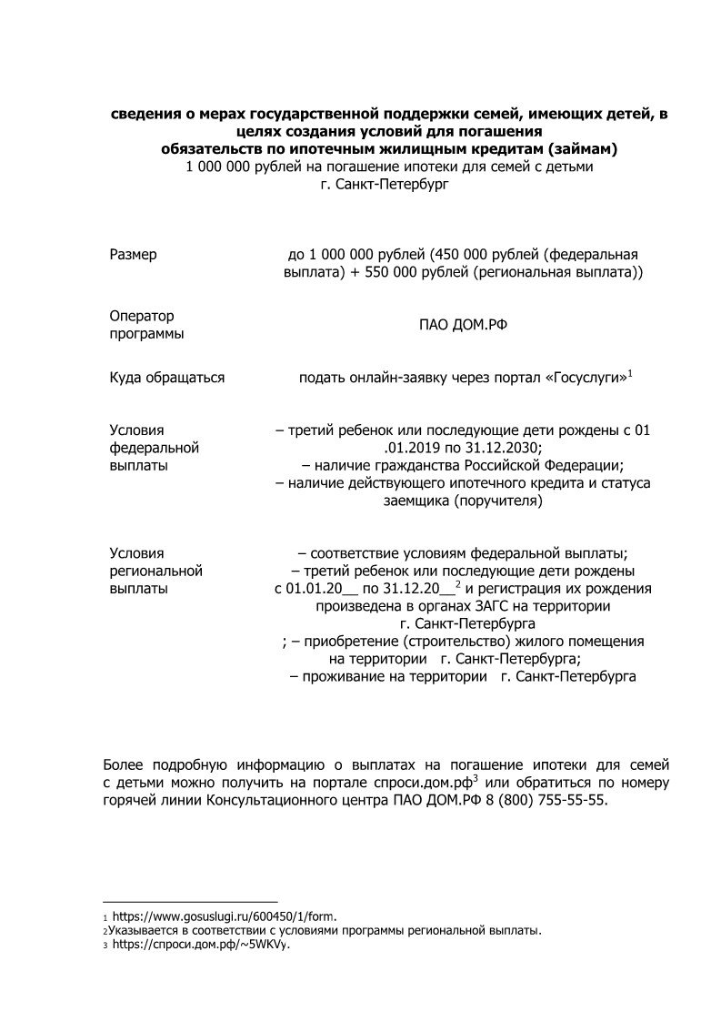 Сведения о мерах государственной поддержки семей, имеющих детей, в целях создания условий для погашения обязательств по ипотечным жилищным кредитам (займам)